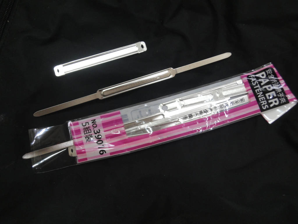 1.從布料上剪下二塊長方形的小布料,布料的寬度一定要讓雙腳釘能穿過去,且要預留兩側要縫線的寬度。