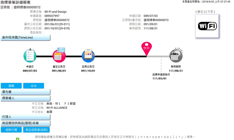 所以Wi-Fi它真的只是一個商標,或者更明確地說,它是一個證明標章,證明這個產品符合IEEE 802.11的標準[註2],不會有掛羊頭賣狗肉的情況,(但沒有Wi-Fi這個符號並不代表一定不符IEEE 802.11,只是少個人背書而已),別忘了IEEE 802.11這個標準,背後所代表的是一大群的專利,因而能達到以商標來行銷技術/專利,讓技術/專利表現出商品與眾不同之協同作戰目的,(老實說,這裡有點是「與眾不同」之相反應用,要表現出與主流商品的功能相同,不然變成小眾產品容易被踢出市場)。