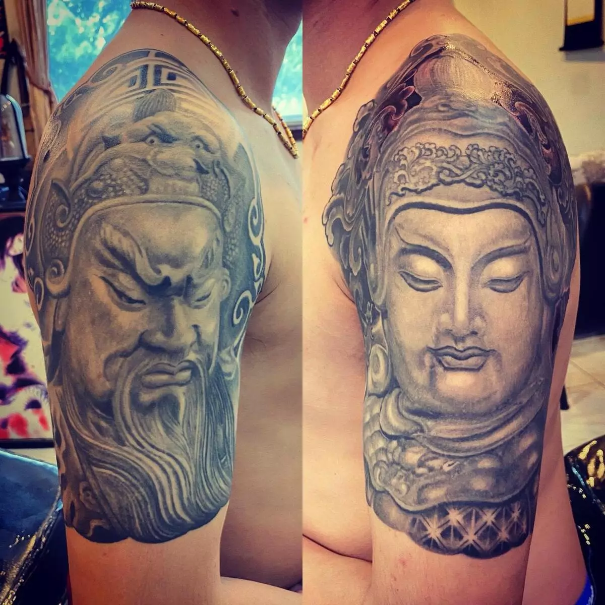 ▲屏東專業佛像刺青,黑白寫實風格表現深刻(圖/Medick Marketing Ltd.提供)