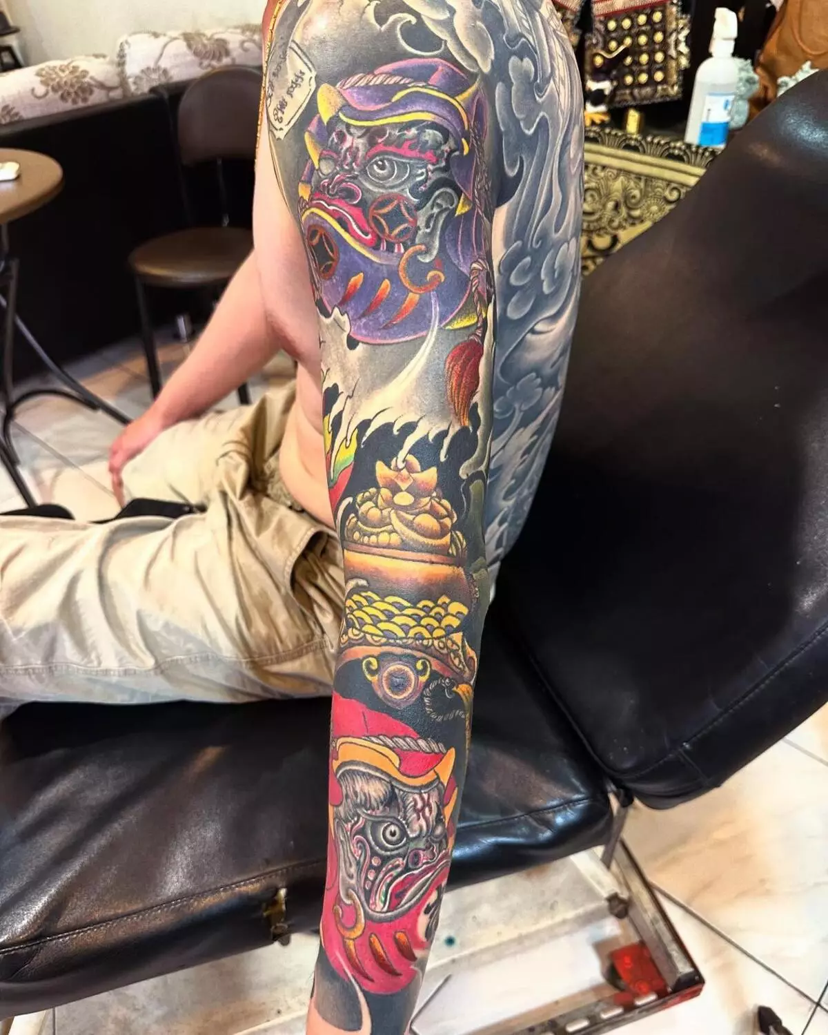「我不是在複製圖案,而是在雕塑人的信仰與個性。」他常說。對他而言,這些圖像並非僅是被刻在皮膚上的線條,而是客人深層信念與情緒的外化。因此每一幅作品不只具有強烈的視覺力道,也承載著故事本身的重量。也因為這樣的創作風格,《景繡堂》逐漸成為南部備受推崇的屏東浮世繪刺青重要據點之一。