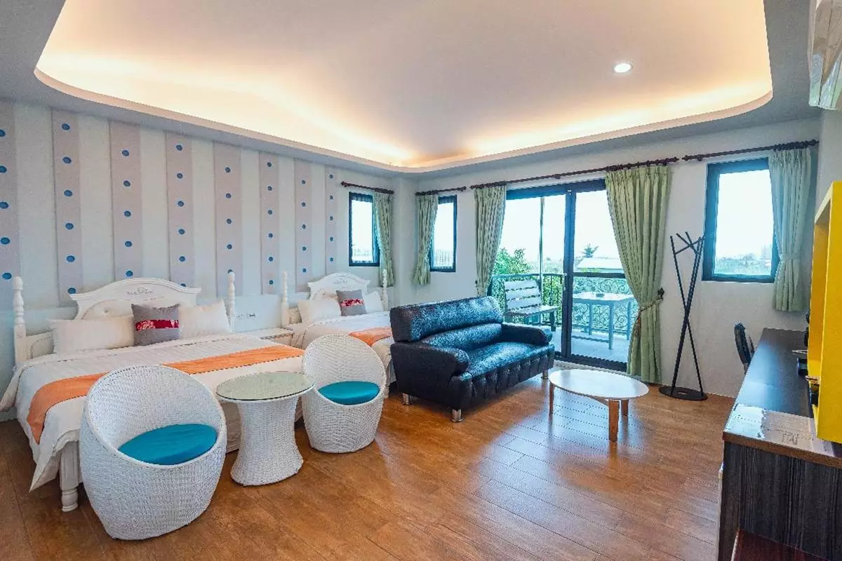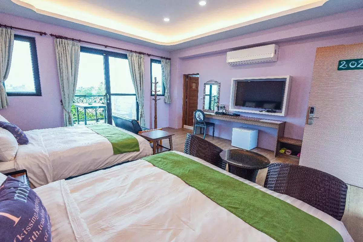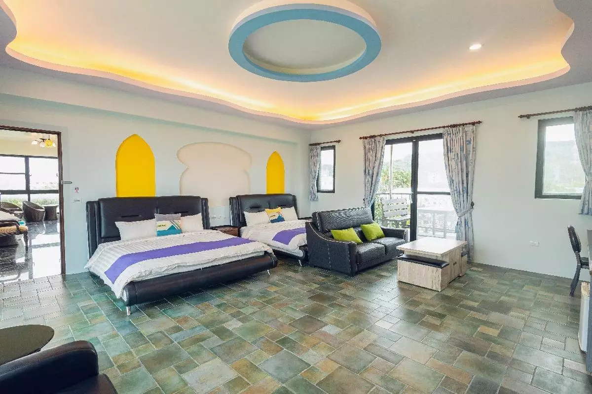 「天水月民宿」特別適合團體旅遊或大型家庭聚會,可容納 28人包棟入住,擁有二人房、四人房和大四人房選擇,彈性滿足不同住宿需求。每間客房皆採用簡約設計,搭配明亮色彩與創意風格地磚,營造溫馨而時尚的住宿氛圍。客房內設有寬敞獨立觀景陽台,讓您可隨時欣賞墾丁的迷人風光。
