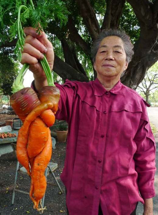 今年春天他們種植的胡蘿蔔大豐收,可是胡蘿蔔與眾不同,每一根都像大自然的巧奪天工,形塑了千奇百怪的模樣:美人腿、猛男秀、健美先生…,無不令人莞爾。