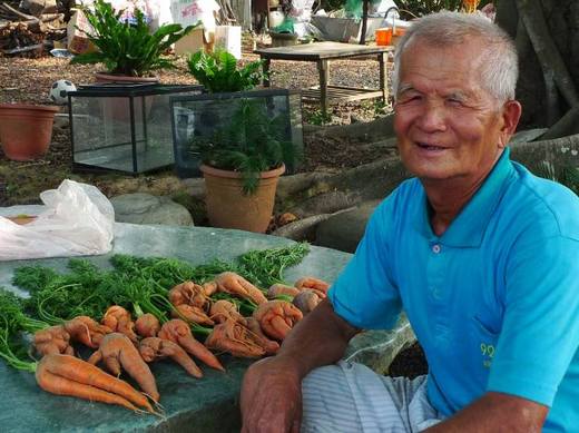 3. 陳朝正老伯種出一堆奇形怪狀的胡蘿蔔,自得其樂。