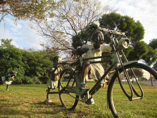 吃力地踩踏老爺單車