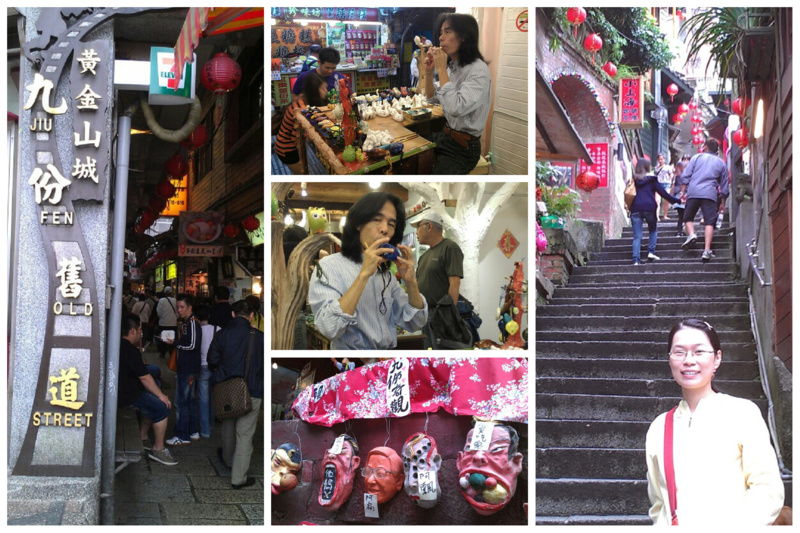 黃金山城~九份舊道就從最熱鬧的7-11老街入口開始,拾階而上的就是最能代表九份的街弄~「豎崎路」,雖然一連串的階梯會讓人爬到腿軟,但店家所陳列出來的商品頗能吸引遊客的目光與駐足停留。