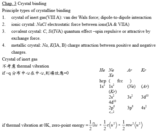 crystal of inert gas(VIII A): van der Wals force; dipole-to-dipole interaction