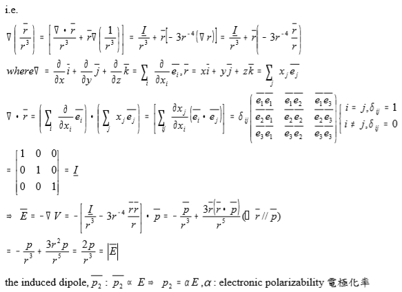 (R/R³)=[∙R/R³+R(1/R³]=I/R³+R[-3R⁻⁴(R)]=I/R³+R[-3R⁻⁴(R/R)]