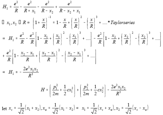 H=(p₁²/2m+½cx₁²)+(p₂²/2m+½cx₂²)-2e²x₁x₂/R³