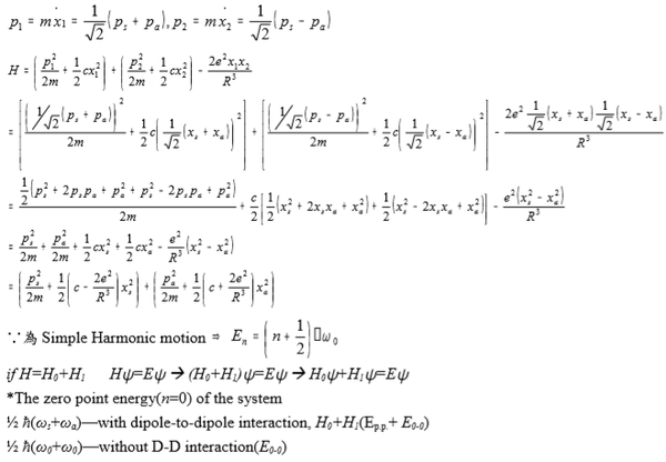 total energy, H=(p₁²/2m+½cx₁²)+(p₂²/2m+½cx₂²)+H₁, H1: 靜電位能