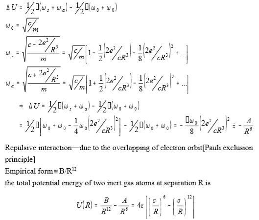 → ∆U=½ ħ(ωs+ωa)-½ ħ(ω0+ω0)≈ ½ ħ[ω0+ω0-¼ω0 (2e²/cR³)²]-½ ħ(ω0+ω0)