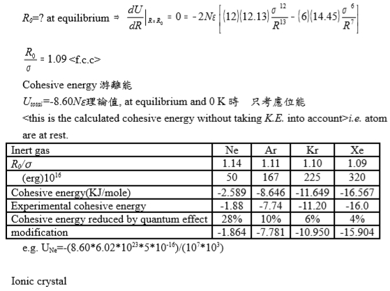 R0=? at equilibrium dU/dR|R=R₀=0=-2Nε[12.13(12σ¹² /R¹³)-14.45(6σ⁶/R⁷)]