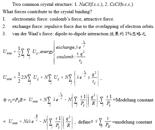 Two common crystal structure: 1. NaCl(f.c.c.), 2. CsCl(b.c.c.)