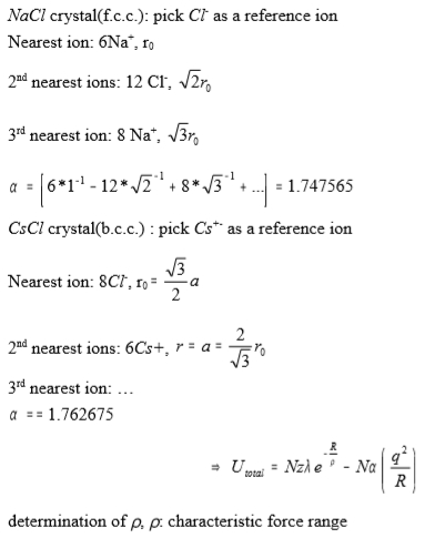 Uₜₒₜₐₗ=Nzλe-R/ρ-N∑j(±1/Pij)(q²/R) , define α≡∑j(±1/Pij)=modelung constant