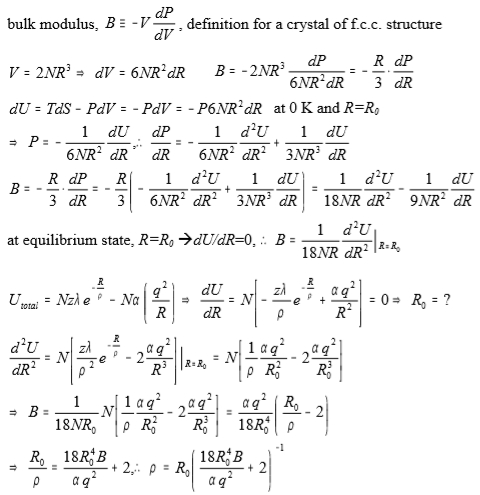 at equilibrium state, R=R0 dU/dR=0, ⸫ B=(1/18NR)d²U/dR²|R=R₀
