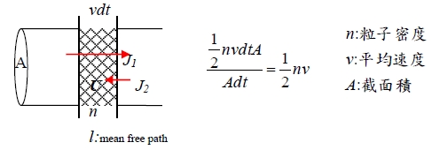 ∑J=J₁-J₂=nvₓcᵥ∙l∙∂T/∂x=Cᵥvₓ∙l∙∂T/∂x=Cᵥvₓ²τ∙∂T/∂x , l=vxτ