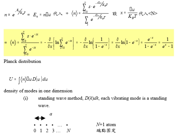 代入n e-Eₙ/kᴃT → Eₙ=nℏω 代入→ n=∑ₛ=0∞se-sℏω/kᴃT/∑s e-sℏω/kᴃT , 設 x=ℏω/kᴃT