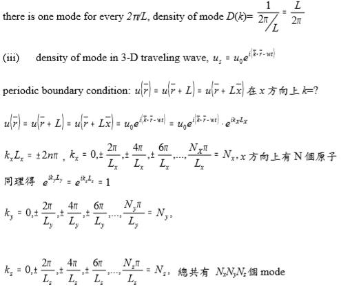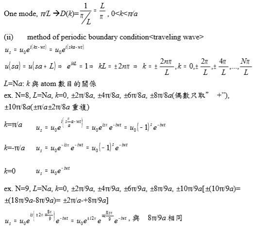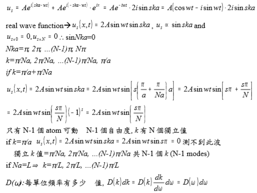 ⸫獨立k值= π/Na, 2π/Na, …(N-1)π/Na 共N-1個k (N-1 modes)