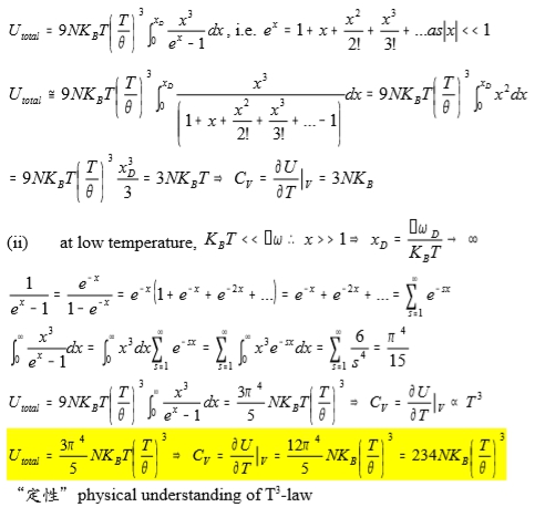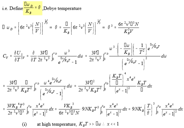 U=9NkᴃT(T/θ)³∫₀xᴅ[x³/(ex-1)]dx, i.e. ex=1+x+x²/2!+x³/3!+... as |x|<<1 span="">