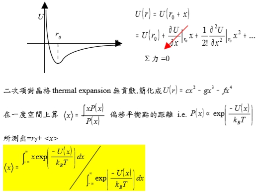 二次項對晶格thermal expansion無貢獻,簡化成U(r)=cx²-gx³-fx⁴