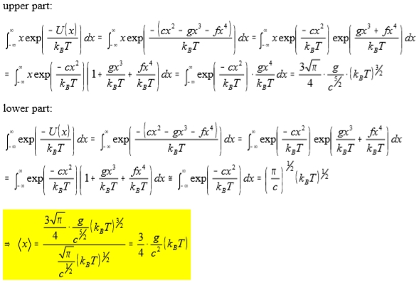 ∫-∞∞xexp[-U(r)/kᴃT]dx=∫-∞∞xexp[-(cx²-gx³-fx⁴)/kᴃT]dx