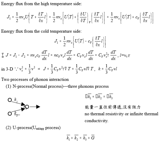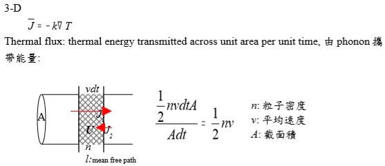 Thermal flux: thermal energy transmitted across unit area per unit time, 由phonon攜帶能量: