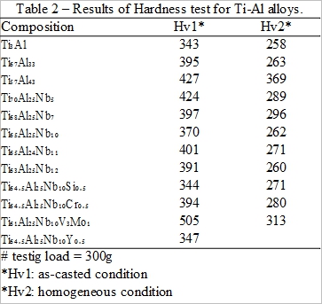 2. 鈦鋁介金屬合金之硬度測試及化學成份分析