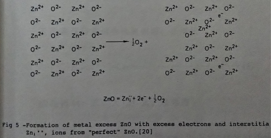 Znᵢ⁺⁺ + 2e⁻ + ½O₂ = ZnO ...........(1)