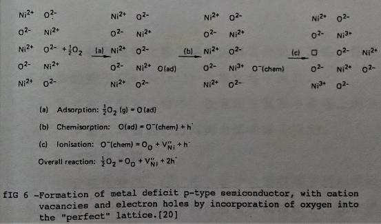 ½O₂ = OO + 2h⁺ + VNi²⁻ ..........(6)