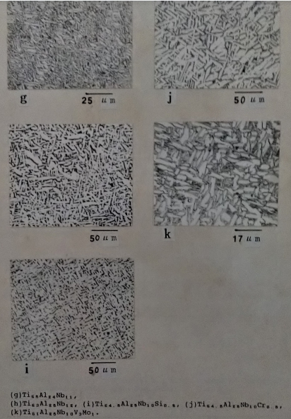 添加Nb的Ti3A1介金屬合金, 主要為籃網狀(basket-weave)的顯微組織; 並且含鈮量高的合金, 其組織也變得較細。