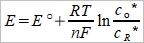 E=E°+(RT/nF)ln[cₒ(0,t)/cR(0,t)]....(4.16)