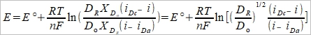 ⸪ Xᴅᵢ=(πDᵢt)½, and E½=E°-(RT/2nF)ln(Dₒ/DR)