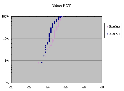 失效電性或超出線上規格: C19L2—VtP1, IdsatP1 fail, LVGOI fail by early leakage