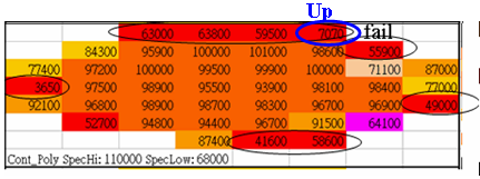 失效電性或超出線上規格: Cont_Poly fail (外圍偏低 OOS)