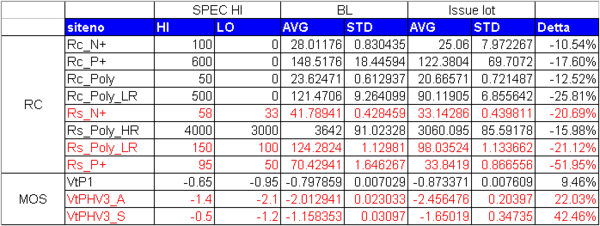 失效電性或超出線上規格: WAT NPNBeta and Rs_P+ OOS, RS_SP OOC