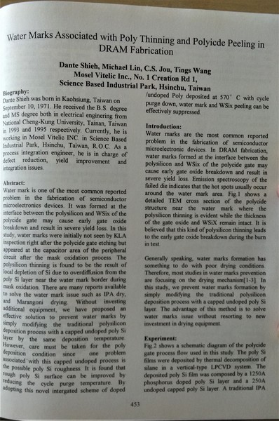 利用一層非晶質矽薄膜覆蓋在重摻多晶矽薄膜上, 改善表面粗糙度以及水痕的發生, 使後續的鎢矽金屬化合物避免剝離和複晶矽/金屬矽化物之界面在氧化過程被氧化過度消耗!