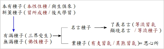 種子的來源三說: 1. 本有說 2. 新薰說 3. 折衷說