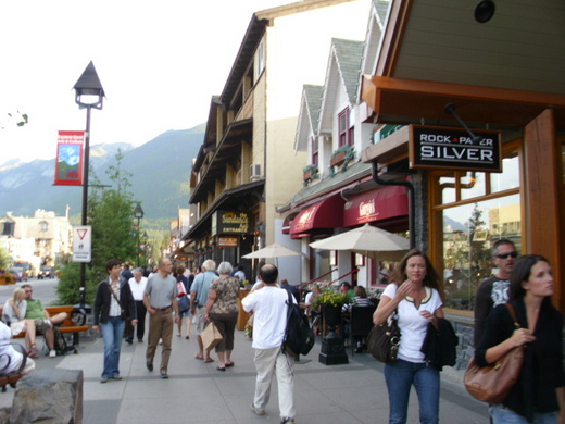 Banff 為觀光重鎮,入夜五光十色,觀光客擠滿大街,