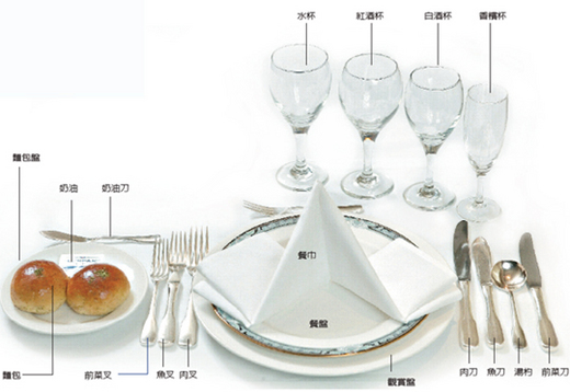 一般教授國禮儀「食」的部分,把「餐具擺設」列為要點,但是多半談到「西餐」的餐具擺設,我就不禁問到:在國內的宴會場合,您有多少次會享用標準形式的「西餐」?相較於中式桌餐次數應該不多吧?我在這裡可以再一次說明標準