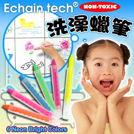 【生活百貨任選】Echain tech兒童洗澡蠟筆組-一般色6入