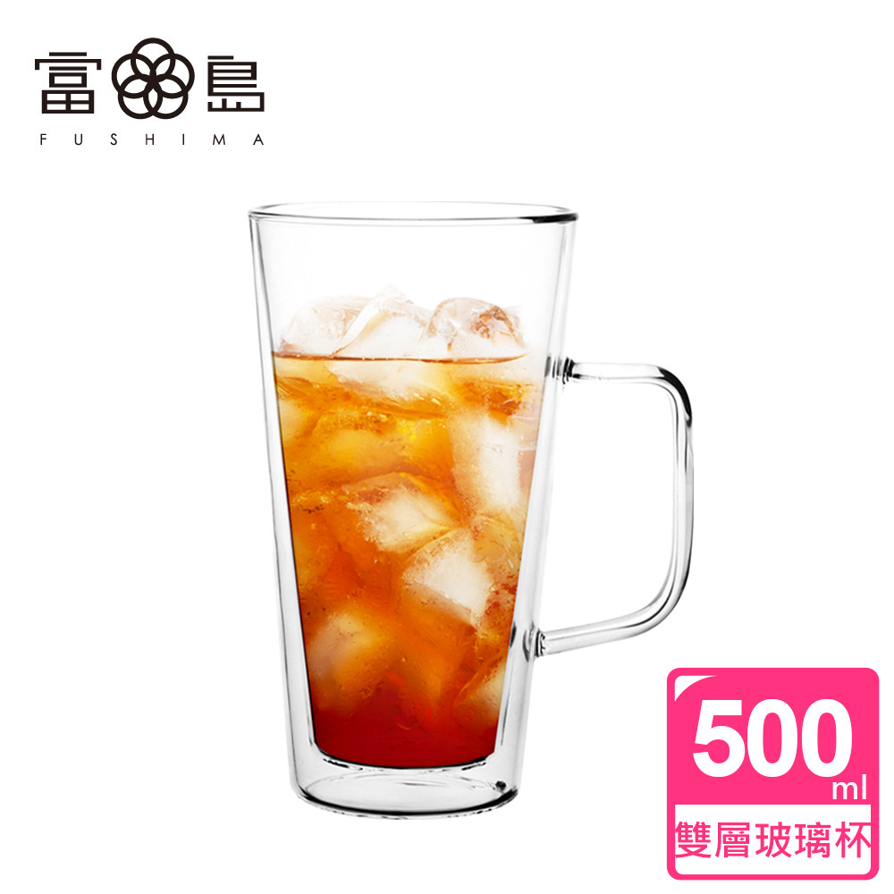 【FUSHIMA 富島】經典系列雙層耐熱玻璃杯500ML(把手)