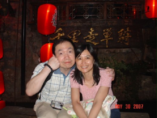 也是來自北加州的一對算是年輕的夫妻,先生是個超疼老婆的先生,家裡的餐點都是他在打理的,勘稱煮菜手藝是一流的,而老婆跟可愛的女兒都是他的食迷,他在一家知名公司上班,巧的是他的公司跟老公的公司非常近,人超風趣,幽默,太太也是很開朗的人,說話非常快,這讓我覺得似曾相見,最後讓我想起我的好友,原來她倆真是像像像,我跟她說,若我朋友來時一定讓她倆相見,來個超級比一比,她這次的最大目地是去雲南的”木王府”尋根.更巧的是他們都是來自我的第一故鄉-嘉義,還是念同一所小學呢!!