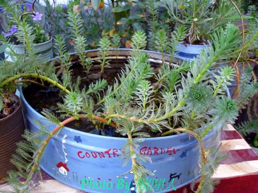 有一次為了買蘭花,我們開車到Glory 途中慨要有家規模非常大的花譜店,於是順到進去看了一下,意外的讓我發現了一盆水草,它長得非常綠又漂亮很像羽毛,讓我愛不釋手,據老板說,這種水草很難找到.但我一直不知它的名字.