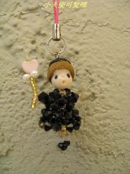 今年3月回台灣時跟好友碰面,她也是教我紙粘土娃娃的好友,她告訴我她們現在正在流行做立體珠珠娃娃,我驚叫說你會作,太利害了,我曾做了一半放棄了,她說有絕竅喔,於是碰面時她拿出她做的娃娃,實在是太可愛了,讓我跟老公都愛不釋手,由於歸期已近,想學也來不及了,只好懇請她幫忙做,她二話不說馬上送我一個黑衣天使,送老公是一隻小狗,那小狗跟我家Babee 很像,另外還請她表妹幫忙做一對公婆.