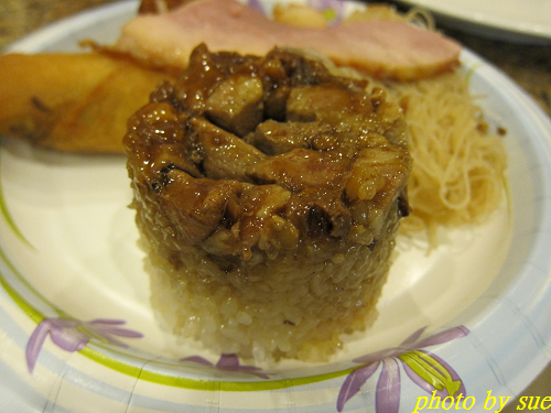 這次聚餐時不會中文的小男孩對著老公指著說他要吃那Upside down Rice 霎時老公愣了一下,呵 原來他是要筒仔米糕, 原來它的英文名字就是Upside down Rice 還真的非常附合.