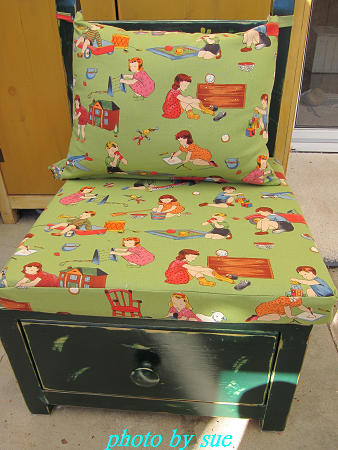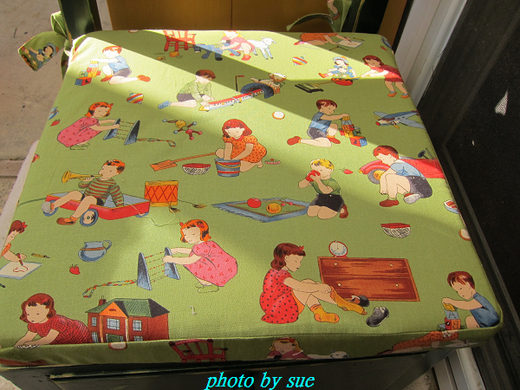 妳怎麼有這麼多童趣的布呢!阿~這麼可愛的椅墊,我欣賞都來及了,