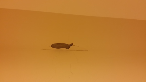 在做打掃時,突然有一片水泥脫落,抬頭向上一望,驚見上頭有一條魚!!!