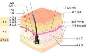 皮膚是人體最大的器官,總重量占體重的5%~15%,總面積為1.5~