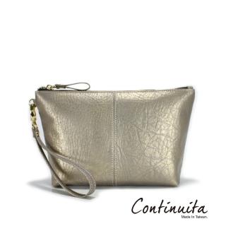 【Continuita 康緹尼】頭層牛皮韓國愛美女孩手拿化妝包(金屬色)推薦