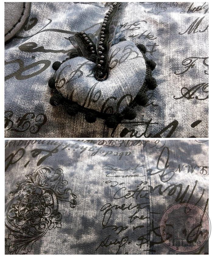 內襯布為白底黑圓點,主體布為個性鐵藍牛仔布。