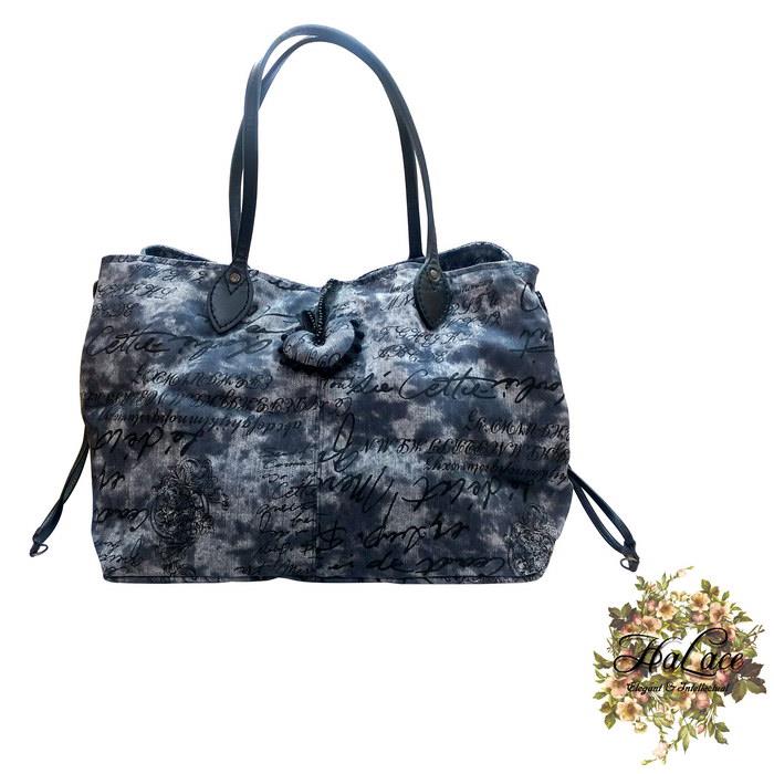 【HaLace創意手工拼布包】鐵藍牛仔布英字手提包網路人氣商品
